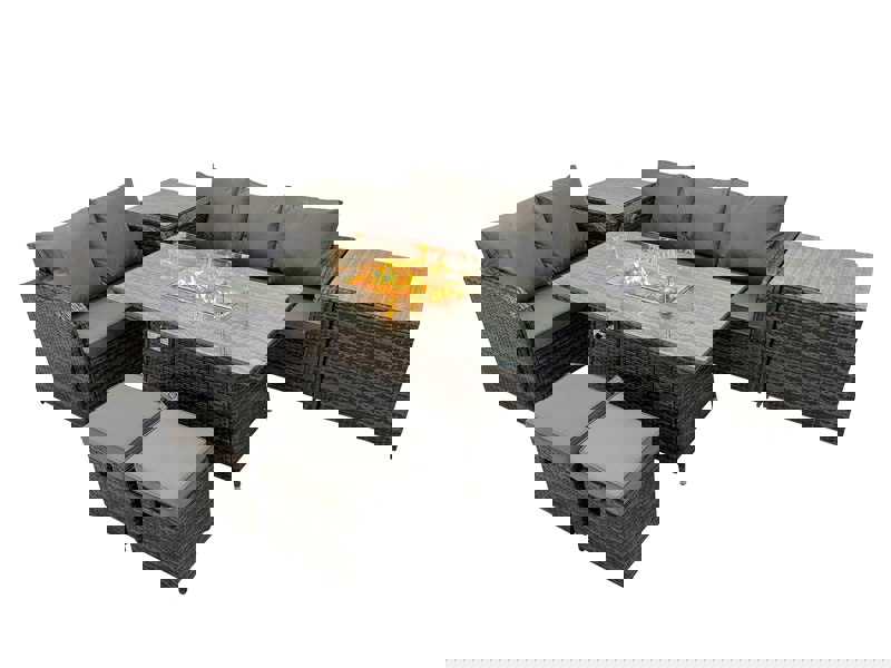 Create a refined space for relaxed dining and evening gatherings with this rattan gas fire pit dining table set. Designed for indoor and outdoor use, it brings together a country-chic look with modern minimalism, adding an elegant touch to your home, patio or balcony.