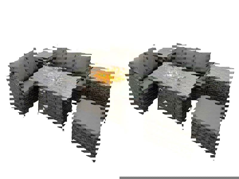 Create a refined outdoor setting with this rattan gas fire pit dining table set, designed for use both indoors and outdoors. With a considered mix of country chic and modern minimalism, it brings a clean, elegant finish to patios, balconies and relaxed entertaining spaces at home.