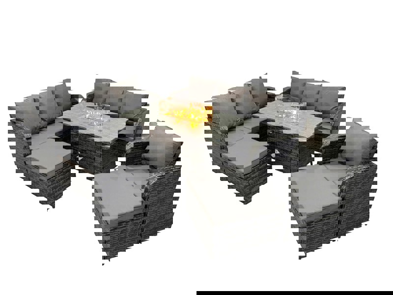 Create a refined outdoor setting with this rattan gas fire pit dining table set, designed for flexible use both indoors and outdoors. With a considered blend of country chic and modern minimalism, it brings a polished look to patios and balconies while offering a comfortable space for dining and relaxing.