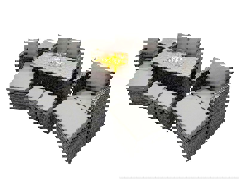 This outdoor rattan furniture set is designed for relaxed dining and lounging in your garden, on the patio or balcony. With a fire pit dining table at the centre, it creates a practical space for entertaining and everyday outdoor living.