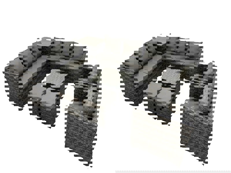 Designed for relaxed outdoor living, this classic corner sofa set seats up to 10 people, creating a generous space for entertaining and everyday lounging. Finished in dark grey mixed PE rattan, it pairs a comfortable seat with soft, cushioned back support for laid-back comfort on the patio or in the garden.