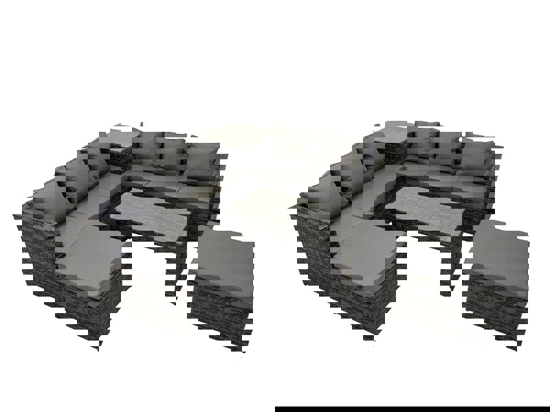 This classic corner sofa set is designed to accommodate 8 people, creating a comfortable space for outdoor lounging and entertaining. Finished in dark grey mixed PE rattan, it pairs a timeless look with practical features for everyday patio use.