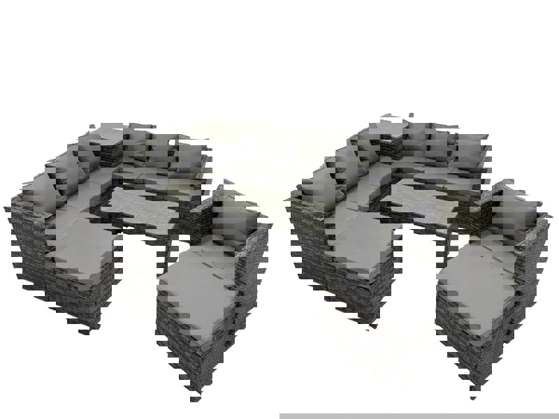 Designed for relaxed outdoor living, this classic corner sofa set seats up to 9 people, making it ideal for hosting and everyday lounging. Finished in dark grey mixed PE rattan, it pairs a spacious layout with soft back cushions for a comfortable place to unwind in the garden or on the patio.