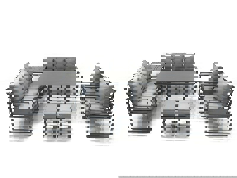Create a refined outdoor setting with this deluxe aluminium adjustable rising sofa dining set, designed for relaxed lounging and flexible dining on the patio or in the garden. Finished in dark grey powder coating with dark grey fabric, it brings a cohesive look to your space while offering a practical layout for everyday outdoor living.