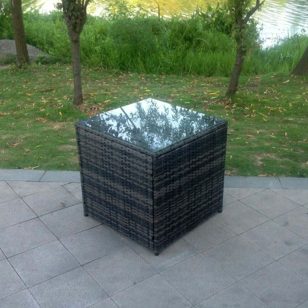 This stylish rattan cube side table is a practical and versatile addition to any patio, garden, or outdoor seating area. Crafted from high-quality PE rattan and supported by a durable galvanised steel frame, it offers excellent strength, stability, and long-lasting performance. The 5 mm thick tempered glass tabletop provides a smooth, easy-to-clean surface, making it ideal for everyday use as a tea or coffee table.