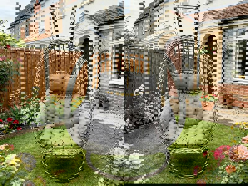 Designed for laid-back lounging, the Fimous two seater egg hanging chair brings a generous, cocooning seat to patios, gardens and indoor spaces alike. A weather-resistant rattan basket is paired with a freestanding steel base and hanging pole, creating an inviting spot to settle in with a book or simply switch off.