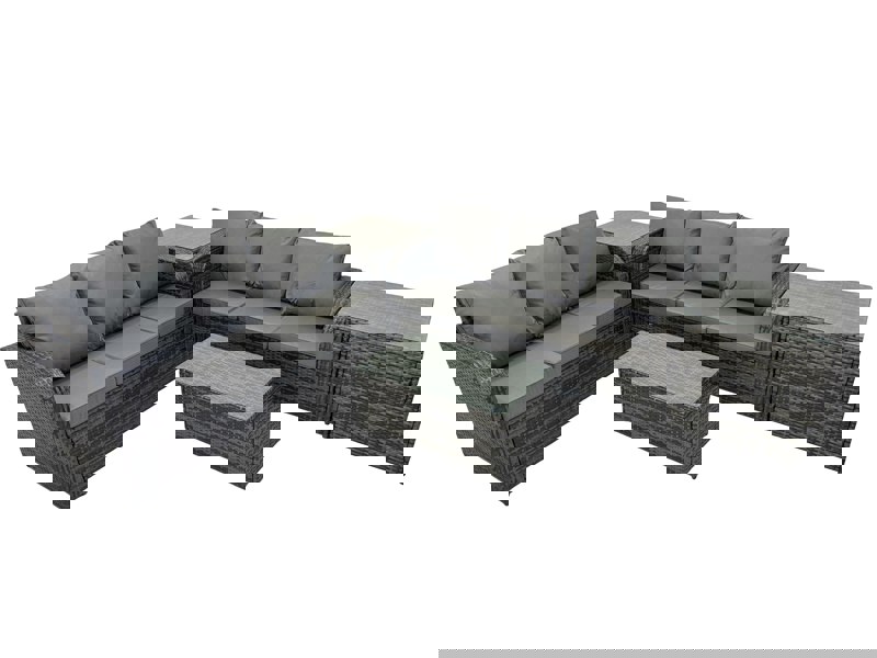 Create a refined outdoor seating area with this modern deluxe rattan garden furniture set, designed for relaxed entertaining across the garden, patio or conservatory. With cushions included and shaped to suit the sofa and chairs, it offers a comfortable place to gather, while the tempered glass table top provides a practical surface for drinks and snacks.