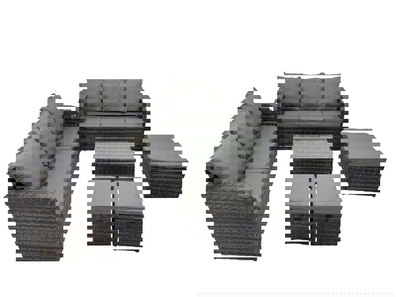 Create a refined outdoor seating area with this modern deluxe rattan garden furniture set, designed for use across a range of occasions in the garden, patio or conservatory. With cushions included and shaped to suit the sofa and chairs, it offers a comfortable place to relax and entertain.