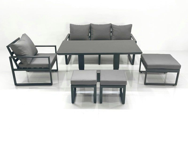 Designed for relaxed outdoor living, this deluxe aluminium adjustable rising sofa dining set brings together comfortable seating and a versatile table for patio or garden use. The adjustable dining table allows you to switch between low and dining heights, making it easy to adapt the set for everyday lounging or outdoor meals.