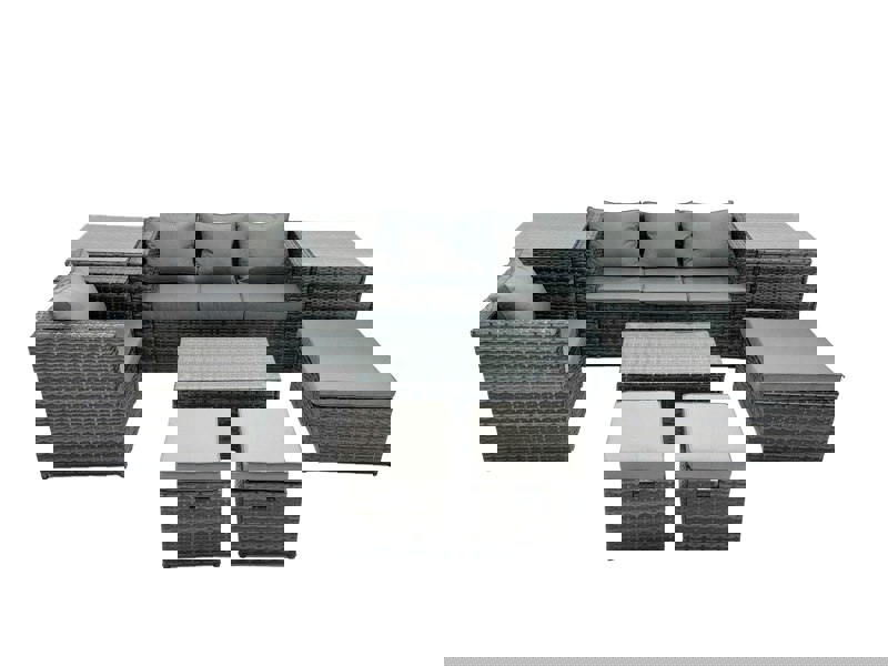 Made with low-maintenance living in mind, the set features removable cushion covers and pieces that are easy to move to different places. Items come flat packed and are designed for easy assembly.