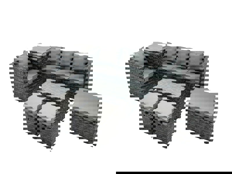 This outdoor rattan furniture set is designed for relaxed garden living, with a heavy-duty build created to handle everyday outdoor use. Featuring dark grey mixed rattan with dark grey fabric, it offers a coordinated look for lounging, coffee breaks and casual entertaining.
