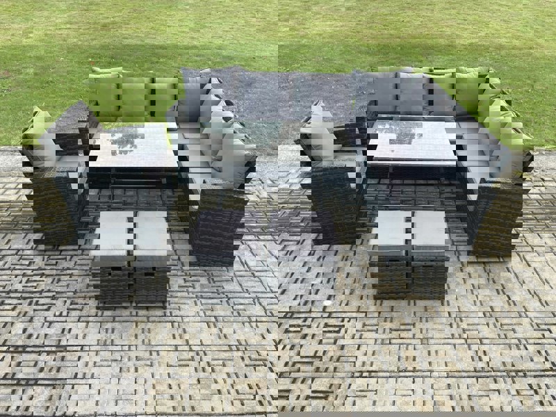 Create a refined outdoor living space with this patio corner sofa dining set, designed for use indoors or outdoors. With dark grey mixed rattan and matching dark grey fabric, it brings a clean, modern look with a subtle country-chic influence to patios, balconies and conservatories.