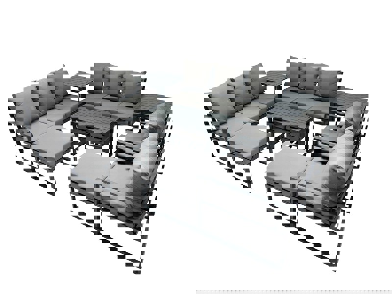Designed for flexible outdoor living, this aluminium garden furniture sofa set offers generous seating for up to 12 people, with a coffee table for serving food, drinks and everyday essentials. A refined choice for patios, gardens, backyards and poolside settings, it also suits indoor spaces where you want a coordinated lounge layout.
