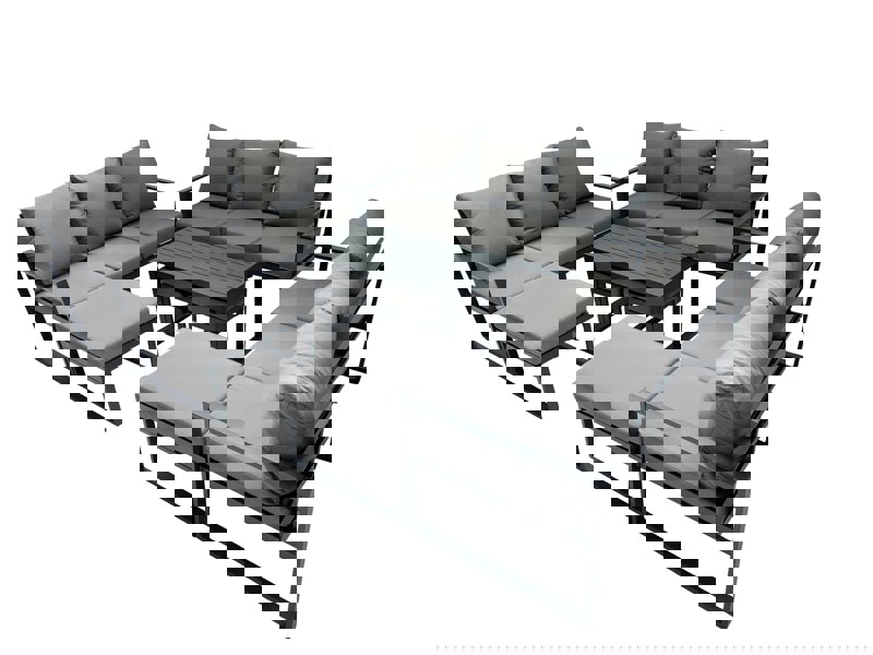Create a refined outdoor seating area with this aluminium garden furniture sofa set, designed to offer generous space for up to 10 people. Complete with an oblong coffee table for serving food, drinks and everyday essentials, it is a practical choice for patios, gardens, backyards and poolside settings, as well as other indoor and outdoor spaces.