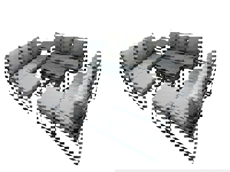 Create a refined outdoor seating area with this aluminium garden furniture sofa set, designed to seat up to 10 people. With a coordinating oblong coffee table and a side coffee table, it offers practical surfaces for food, drinks and everyday entertaining across patios, gardens, backyards, pool areas and other indoor or outdoor spaces.