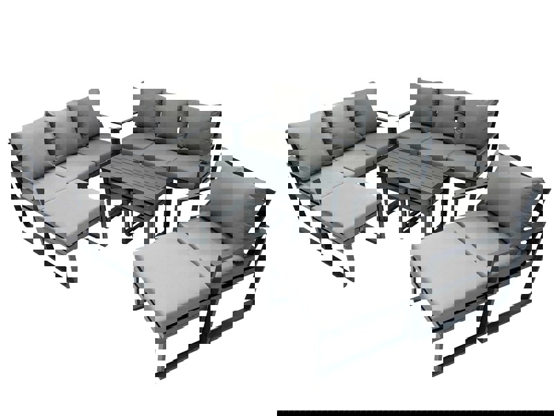 Create a refined outdoor lounge area with this aluminium garden furniture sofa set, designed to seat up to 11 people. With an oblong coffee table for food and drinks, it is well suited to patios, gardens, backyards and poolside settings, as well as indoor spaces where you want relaxed, sociable seating.