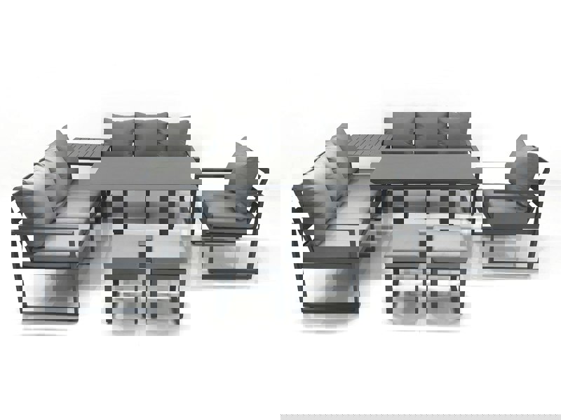 Create a refined outdoor setting with this deluxe aluminium sofa set, designed for patios and gardens. Made from alloy aluminium with a dark grey powder-coated finish, it offers sturdy structural durability and a coordinated look with dark grey fabric. The adjustable dining table brings added flexibility, allowing you to set the height to suit relaxed lounging or more formal outdoor dining.