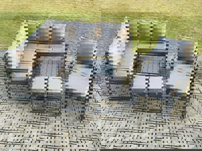 Create a refined outdoor seating area with this 9 seater deluxe garden furniture set, designed to bring comfort and structure to patios, decks, backyards, porches and poolside spaces. Made with an alloy aluminium construction, it is built for sturdiness and long-lasting use, and can be kept outdoors all year round.