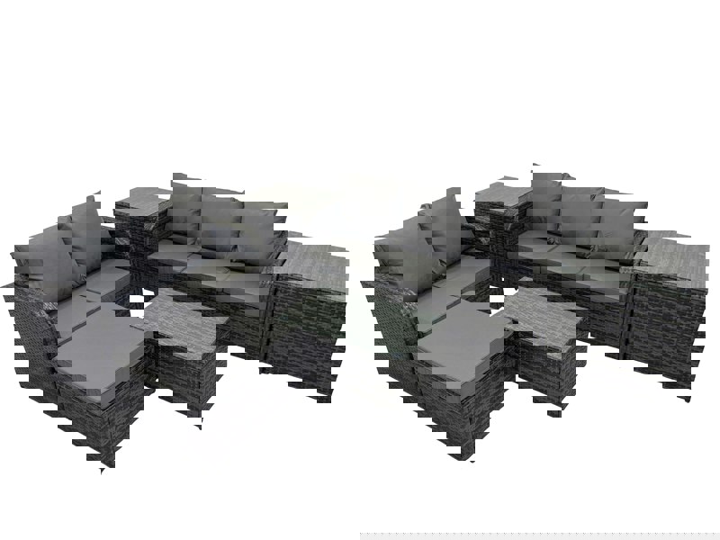 Designed for relaxed outdoor living, this modern deluxe rattan garden furniture set is suited to a range of occasions across the garden, patio or conservatory. The set includes fitted cushions shaped to the sofa and chairs for added comfort, alongside a rectangular coffee table with a tempered glass top.