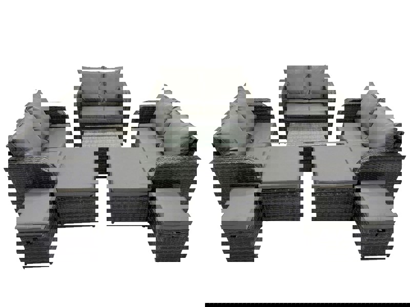 Made with high quality PE rattan and a durable galvanised steel construction, the set is built for sturdiness and long-lasting use. Ergonomic high backs and a reclining design enhance comfort, while the coffee table is finished with tempered glass secured with suckers to help prevent sliding.