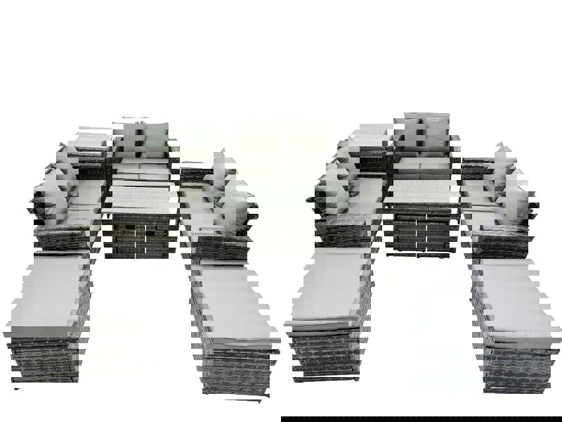 This outdoor rattan furniture set is designed to elevate patios and gardens with a coordinated layout for relaxed entertaining and everyday lounging. Made with high quality PE rattan and a durable galvanised steel construction, it is built for sturdy, long-lasting outdoor use and can be kept outside all year round.