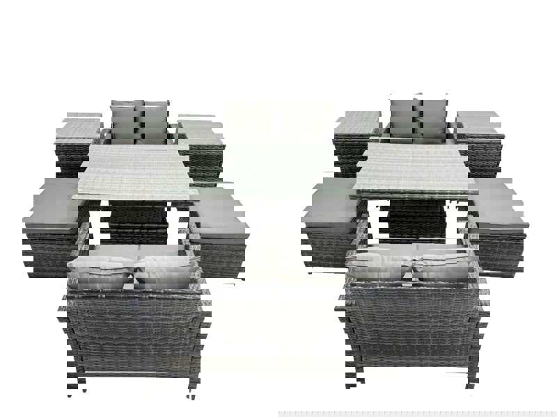 This 6 seat rattan garden furniture set is designed for relaxed outdoor living, whether you are hosting friends on the patio or enjoying everyday lounging in the garden. With a rising table that can be used as a coffee or dining table, it offers flexible comfort for casual drinks and laid-back meals.