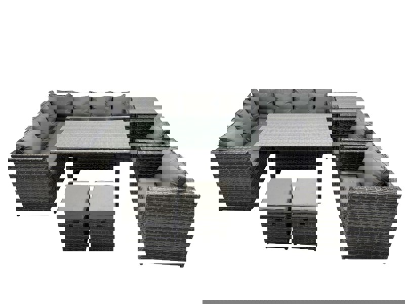 The set arrives flat packed and is designed to be easy to assemble, with practical details that support everyday comfort and convenience. Dark grey mixed rattan styling is paired with supportive cushions and a tempered glass tabletop for a refined finish.
