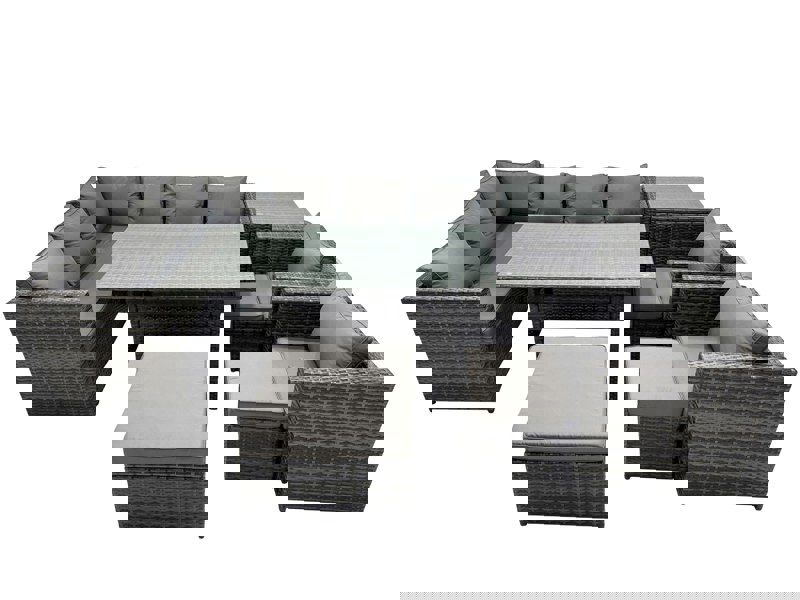 The Fimous Outdoor PE Rattan Sofa Set is a deluxe choice for patio or garden living, designed to create a comfortable space for relaxing and dining outdoors. Made from PE rattan with a galvanised steel construction, it is built for sturdiness and long-lasting use.