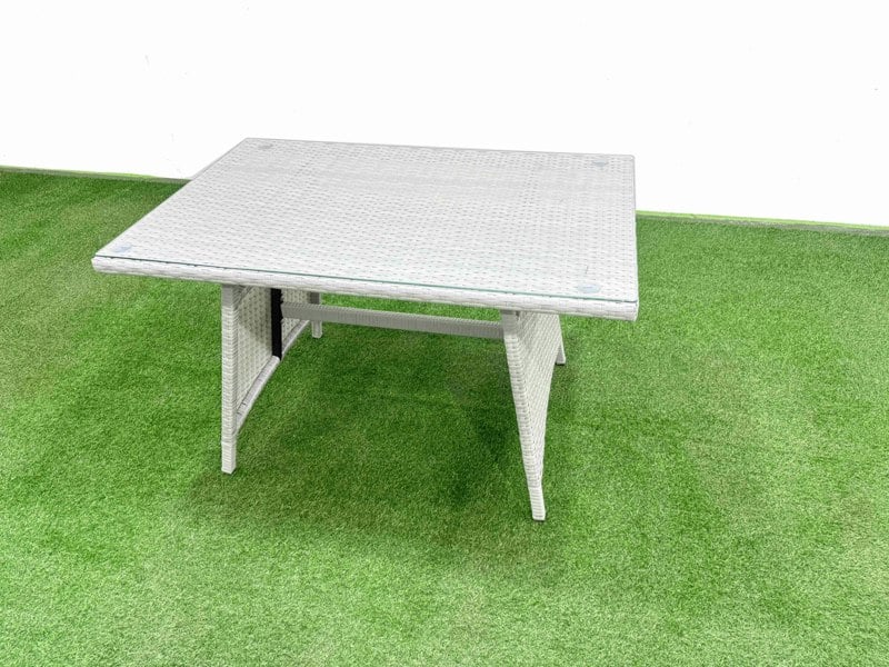 Create a refined outdoor setting with this rattan garden furniture dining set, designed for relaxed entertaining in courtyards, on decks, or by the pool. Finished in light grey mixed rattan with dark grey fabric, it brings a coordinated look to your patio while offering a practical layout for everyday lounging and dining.