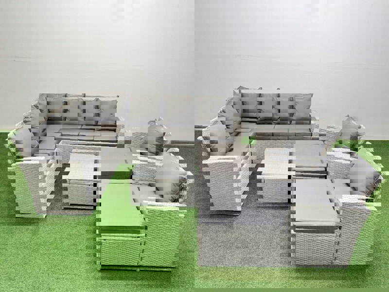 Create a refined outdoor seating area for relaxed afternoons and easy entertaining with this outdoor rattan garden furniture set. Designed for use in a courtyard, deck, backyard, porch or poolside setting, it combines a weather-resistant PE rattan finish with a galvanised steel frame to suit the demands of the UK climate.