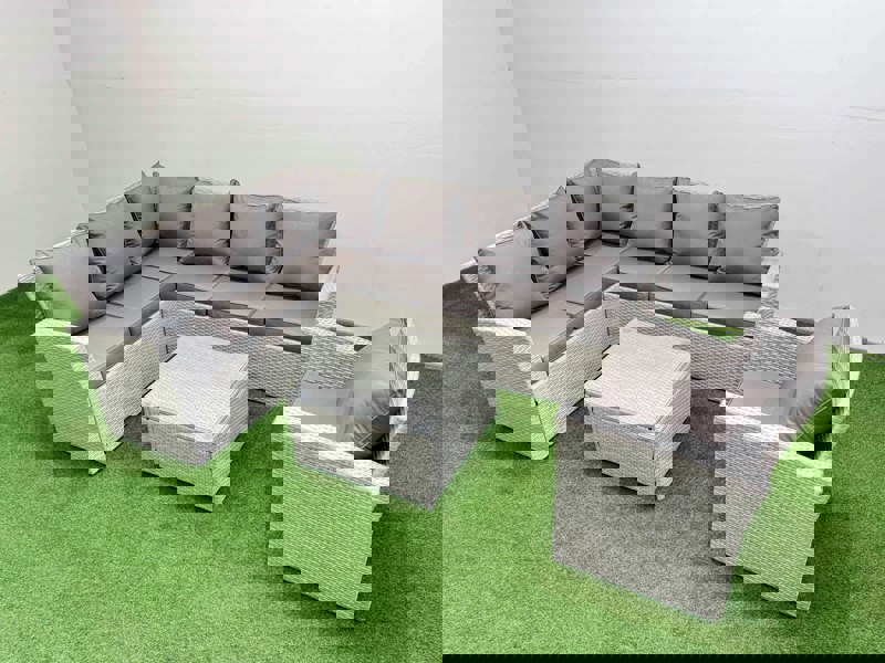 Create a refined outdoor seating area for your courtyard, deck, backyard, porch or poolside with this garden furniture set. Designed for everyday lounging and entertaining, it pairs a light grey mixed rattan look with dark grey fabric for a clean, contemporary finish.