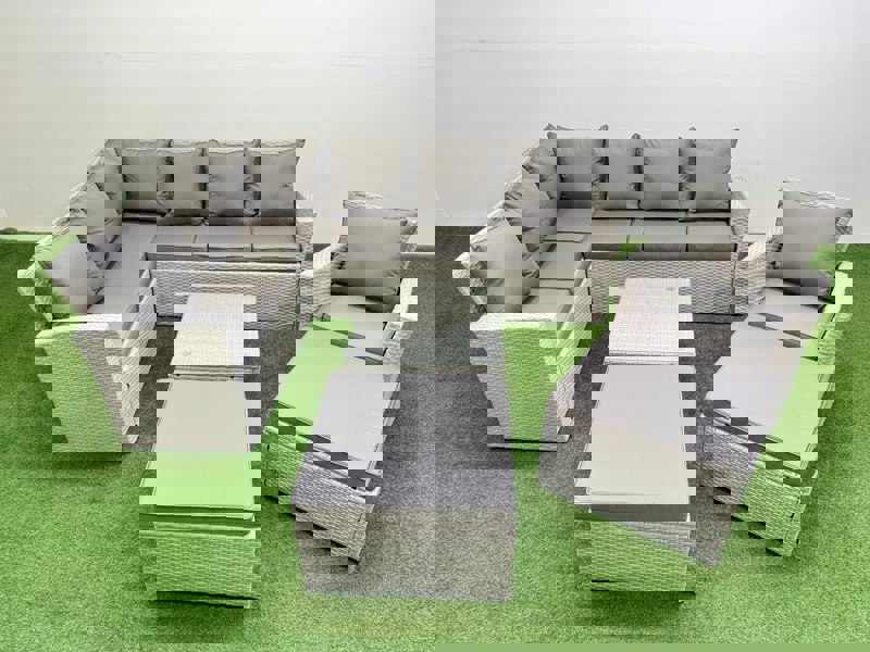 Create a refined outdoor seating area for your courtyard, deck, backyard, porch or poolside with this outdoor rattan garden furniture set. Designed for relaxed entertaining and everyday lounging, it combines a weather-resistant PE rattan finish with a galvanised steel frame to suit the demands of the UK climate.