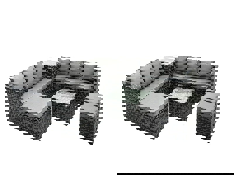 Delivered flat packed for easy assembly, the set is finished in dark grey mixed rattan with dark grey fabric. Comfort is enhanced with 8cm-thick seat cushions and soft pillow back cushions, while removable cushion covers help keep everyday care simple.