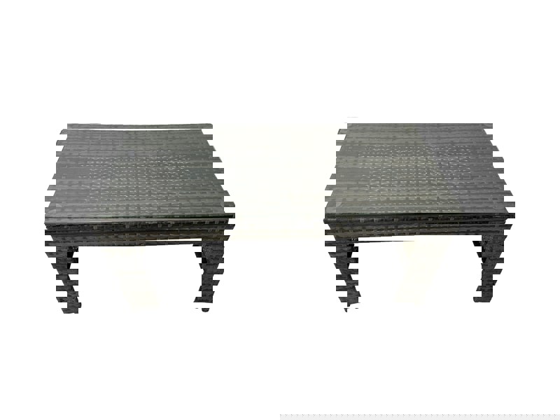 Finished in dark grey mixed rattan with dark grey fabric, the set includes an oblong coffee table topped with transparent tempered glass. Supplied flat packed for straightforward assembly, it is made for low-maintenance use, with removable cushion covers to simplify cleaning.