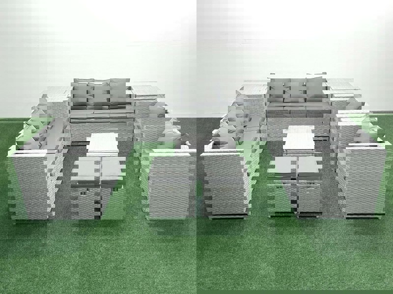 Bring a refined, coordinated look to your patio or garden with this deluxe outdoor rattan sofa set. Designed for relaxed outdoor living, it combines a light grey mixed rattan finish with dark grey fabric, creating a contemporary setting for everyday lounging and entertaining.
