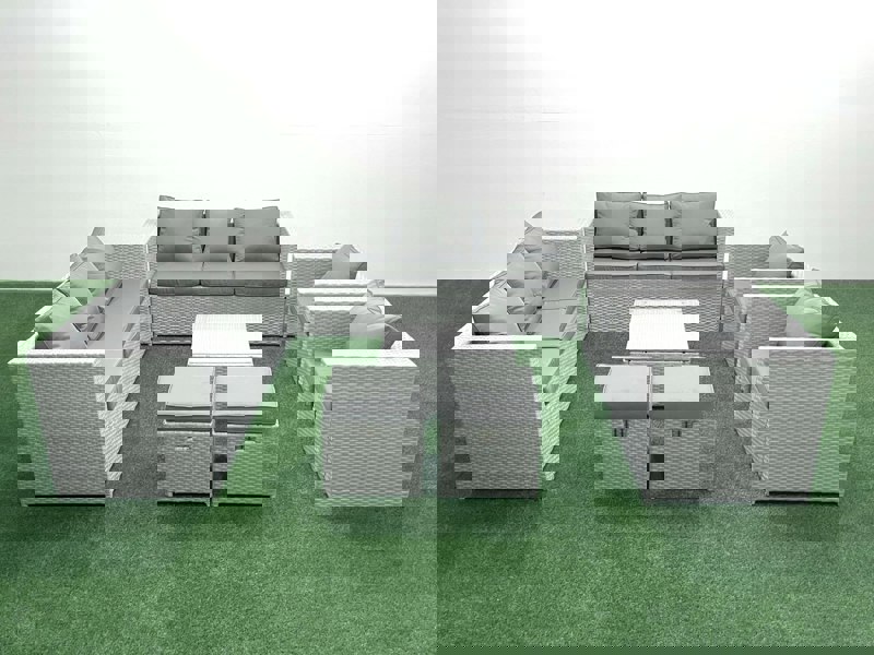 Finished in light grey mixed rattan with dark grey fabric, the set brings a coordinated look to your space. Comfort is enhanced with 8cm thick seat cushions and soft pillow back cushions, while removable cushion covers make everyday care simpler.