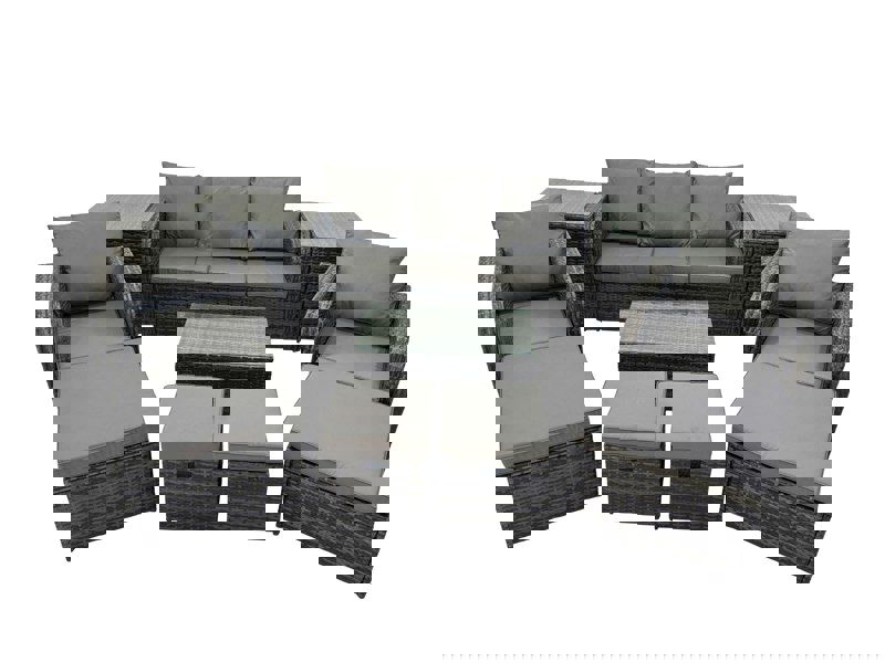 Create a refined outdoor seating area with this modern deluxe rattan garden furniture set, designed for use across the garden, patio or conservatory. With cushions shaped to suit the sofa and chairs, it offers a comfortable place to relax and entertain, while the tempered glass table top adds a practical surface for everyday use.