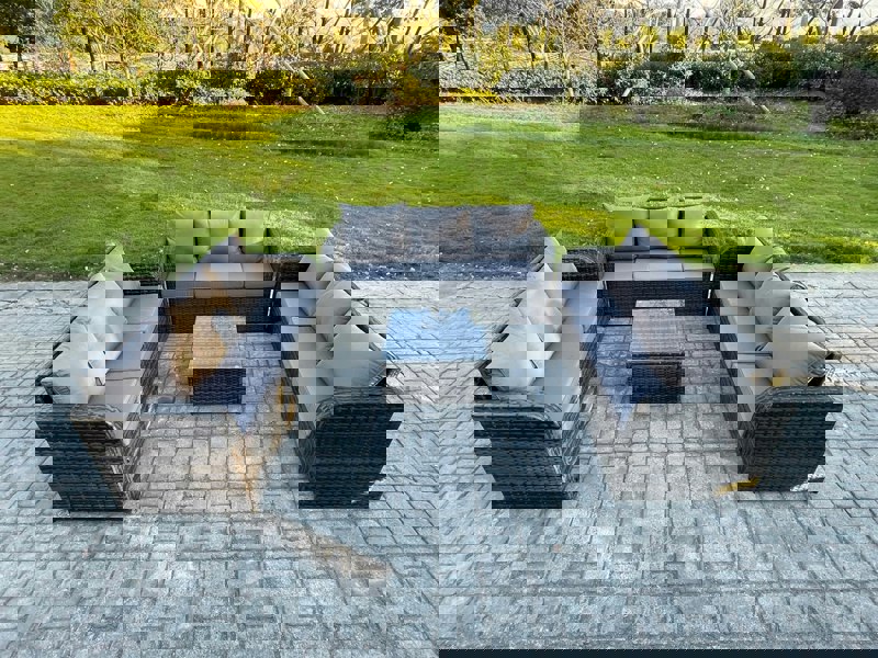 With thick seat cushions, soft pillow back cushions and a square coffee table topped with tempered glass, it offers a comfortable setting for socialising or unwinding outdoors. The set arrives flat packed for easy assembly and is designed to be low maintenance, with removable cushion covers for added practicality.