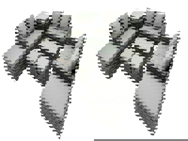Create a considered outdoor seating area with this PE rattan garden furniture set, designed for patio or garden use. Built with a galvanised steel construction for sturdiness and long-lasting durability, it is suitable to be left outdoors all year round. Finished in dark grey mixed rattan with dark grey fabric, the set brings a cohesive look to relaxed entertaining and everyday lounging.