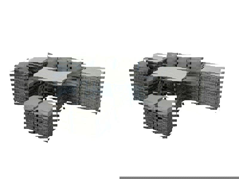 Designed for outdoor relaxation, this heavy-duty rattan sofa set brings together practical comfort and a coordinated look for garden seating and dining. Built to withstand sun, rain and wind, it offers a low-maintenance setup that suits everyday use outdoors.