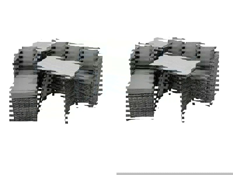 This rattan dining and lounge set is designed for relaxed outdoor living, combining seating and table space for everyday garden use. Built with a rust-proof steel frame and all-weather PE wicker, it is made to withstand sun, rain and wind while keeping maintenance straightforward.