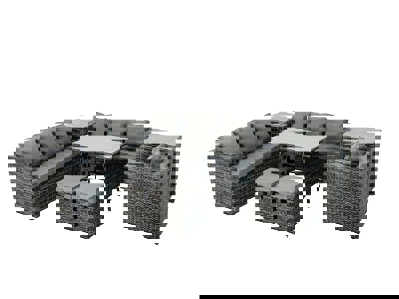 Finished in dark grey mixed rattan with dark grey fabric, the set brings a coordinated look to your patio. The furniture is supplied flat packed for easy assembly, with practical details that help keep the set stable and simple to maintain.