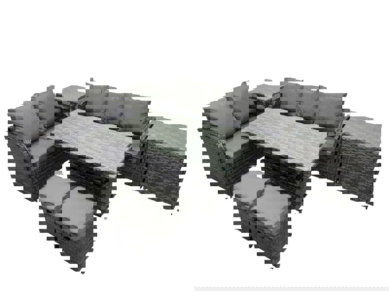 Create a refined outdoor seating and dining area with this PE rattan sofa set, designed for garden and patio living throughout the year. Made with weather-resistant wicker PE and reinforced galvanised steel, it pairs a smart, contemporary look with a durable, practical build for everyday use.