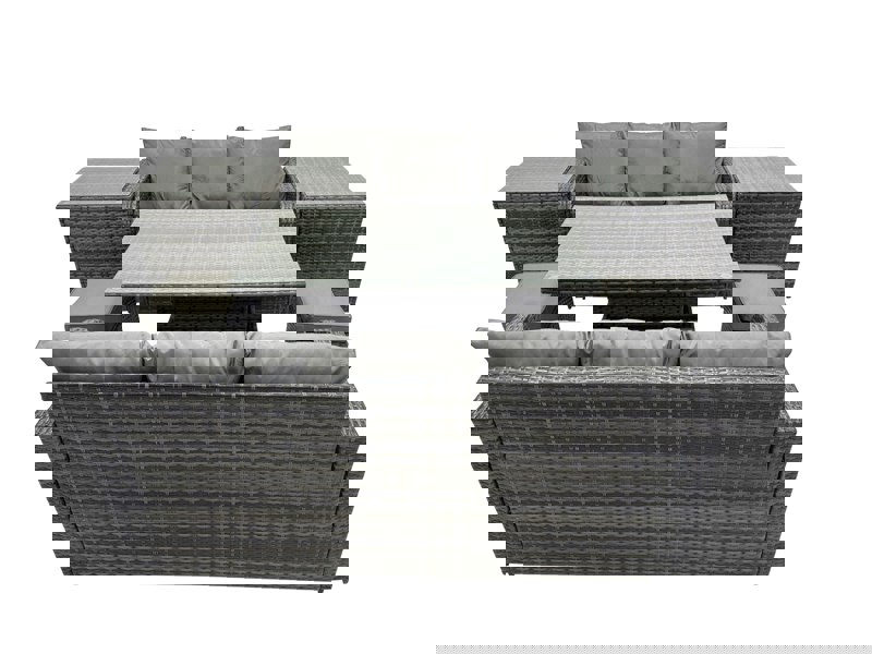 Create a refined outdoor seating and dining area with this PE rattan sofa set, designed for garden and patio living throughout the year. Finished in dark grey mixed rattan with matching dark grey fabric, it brings a coordinated look to relaxed coffee moments and more formal dining.