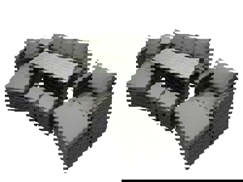 Create a refined outdoor seating and dining area with this PE rattan sofa set, designed for gardens and patios. Made with weather-resistant wicker PE and reinforced galvanised steel, it is built for year-round use while keeping a clean, contemporary look.