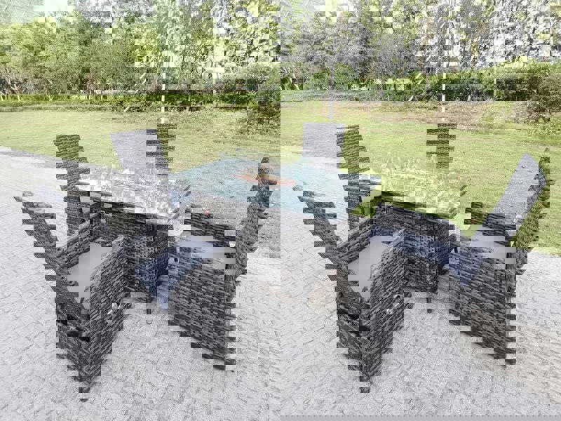 Create a refined outdoor dining and lounging space with this rattan garden furniture set, complete with a rectangular gas fire pit table and 4 reclining chairs. Designed for relaxed entertaining at home, it pairs adjustable seating with a statement table featuring a transparent tempered glass top.