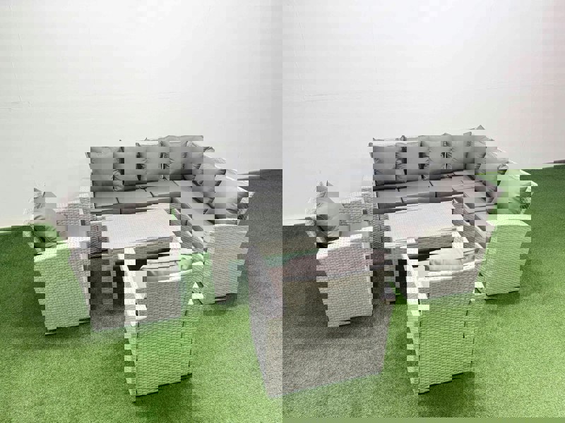 Made with high quality PE rattan and a durable galvanised steel construction, the set is built to withstand bad weather in the UK. Comfort is enhanced with an ergonomic high back and a reclining design, while the oblong coffee table is finished with tempered glass to create a practical surface for drinks and snacks.
