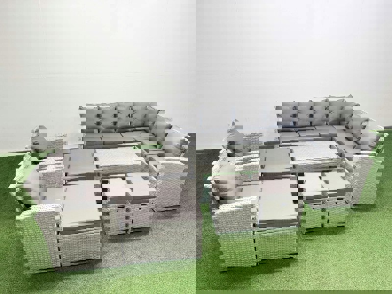 The Fimous Rattan Garden Furniture Set is a 9-piece outdoor seating arrangement designed to add a refined finish to your courtyard, deck, backyard, porch or poolside. With flexible layout options, it can be combined into different configurations to suit your space and the occasion.