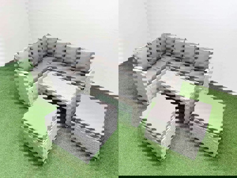 Designed to elevate a courtyard, deck, backyard, porch or poolside setting, this deluxe garden furniture set brings flexible outdoor seating to your space. It can be arranged into different configurations whenever you need, making it easy to adapt for everyday lounging or entertaining.