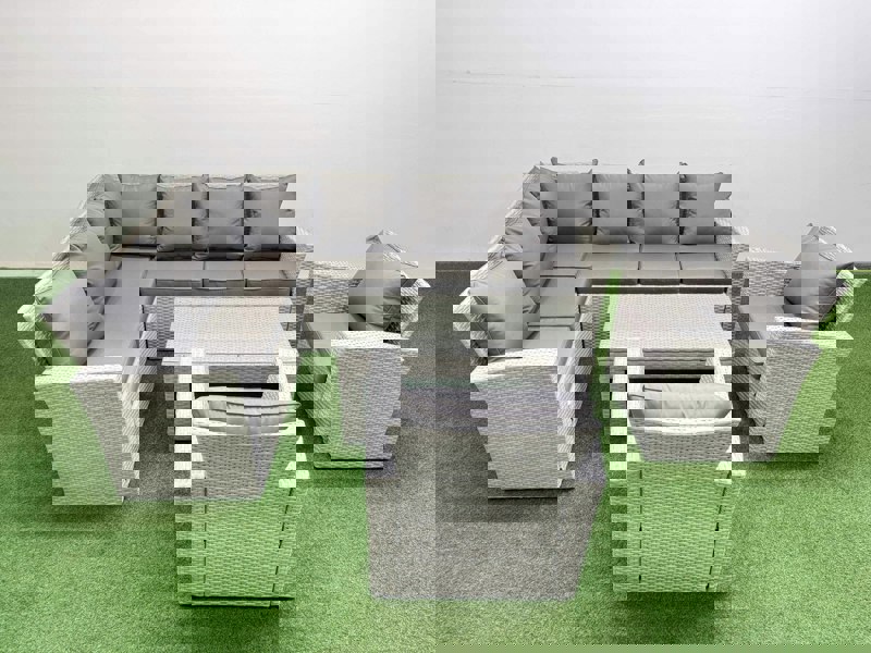 Designed to elevate outdoor living, this deluxe garden furniture set brings a refined look to a courtyard, deck, backyard, porch or swimming pool area. It can be arranged into different configurations, allowing you to adapt the layout to suit the occasion.